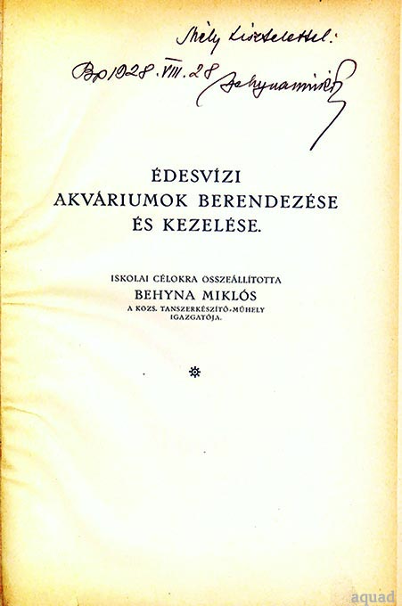 Behyna Miklós: Édesvízi akváriumok berendezése és kezelése. Iskolai célokra ·